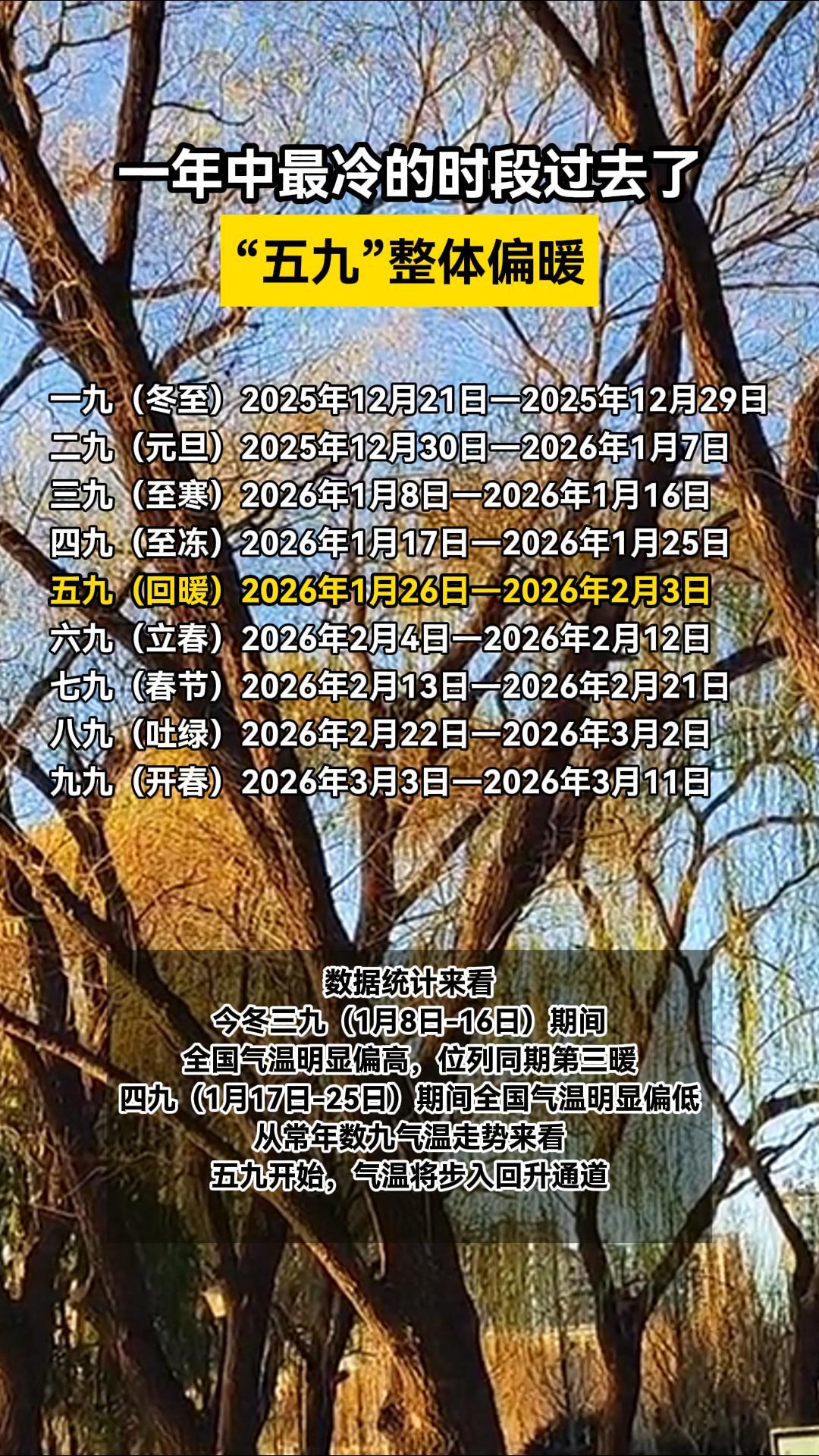 一年中最冷的时段过去了