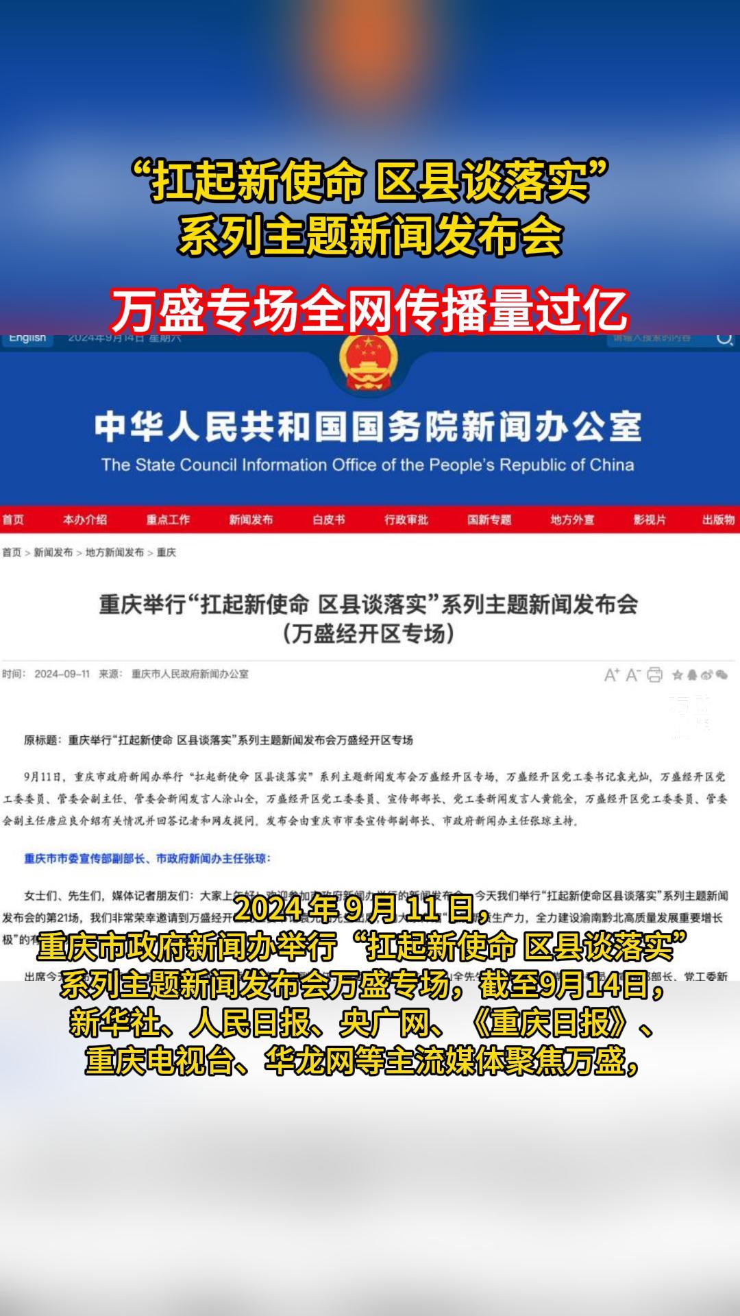 “扛起新使命 区县谈落实”系列主题新闻发布会万盛专场全网传播量过亿