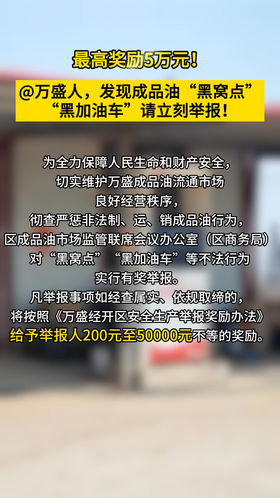 最高奖励5万元!@万盛人,发现成品油“黑窝点”“黑加油车”请立刻举报!