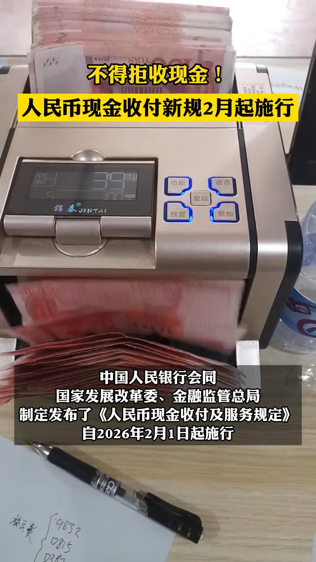 人民币现金收付新规2月起施行