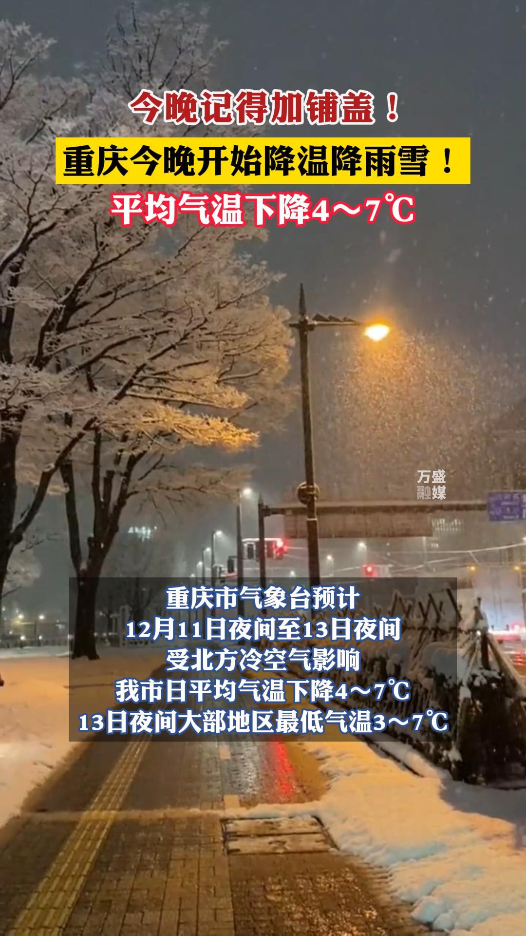 今晚记得加铺盖!重庆今晚开始降温降雨雪!平均气温下降4~7℃