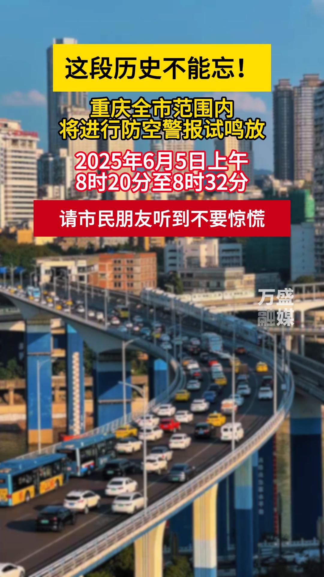 6月5日重庆将在全市范围内进行防空警报试鸣放