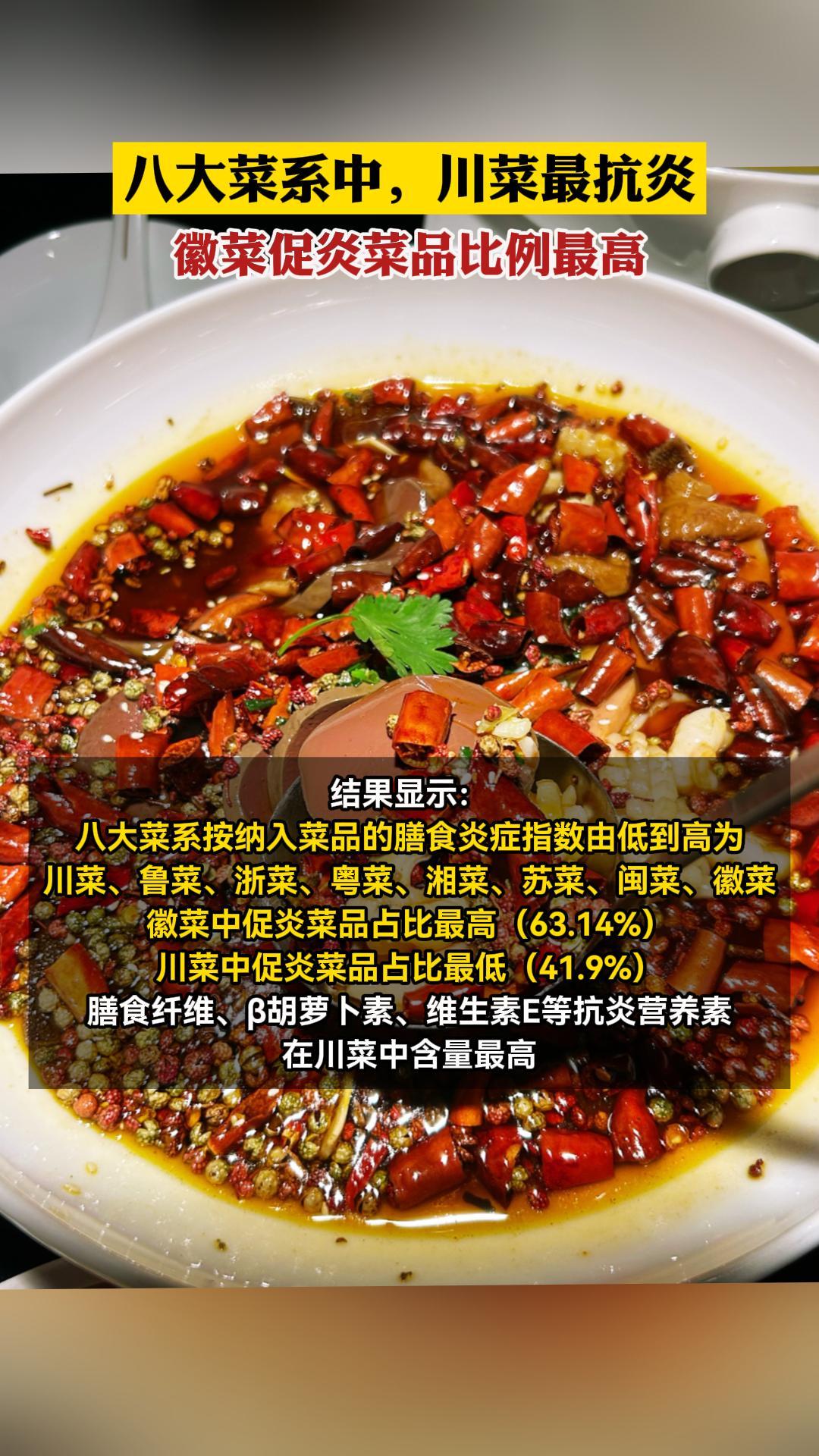 八大菜系中,川菜最抗炎徽菜促炎菜品比例最高