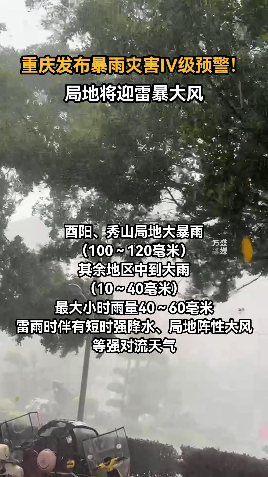 重庆发布暴雨灾害Ⅳ级预警!