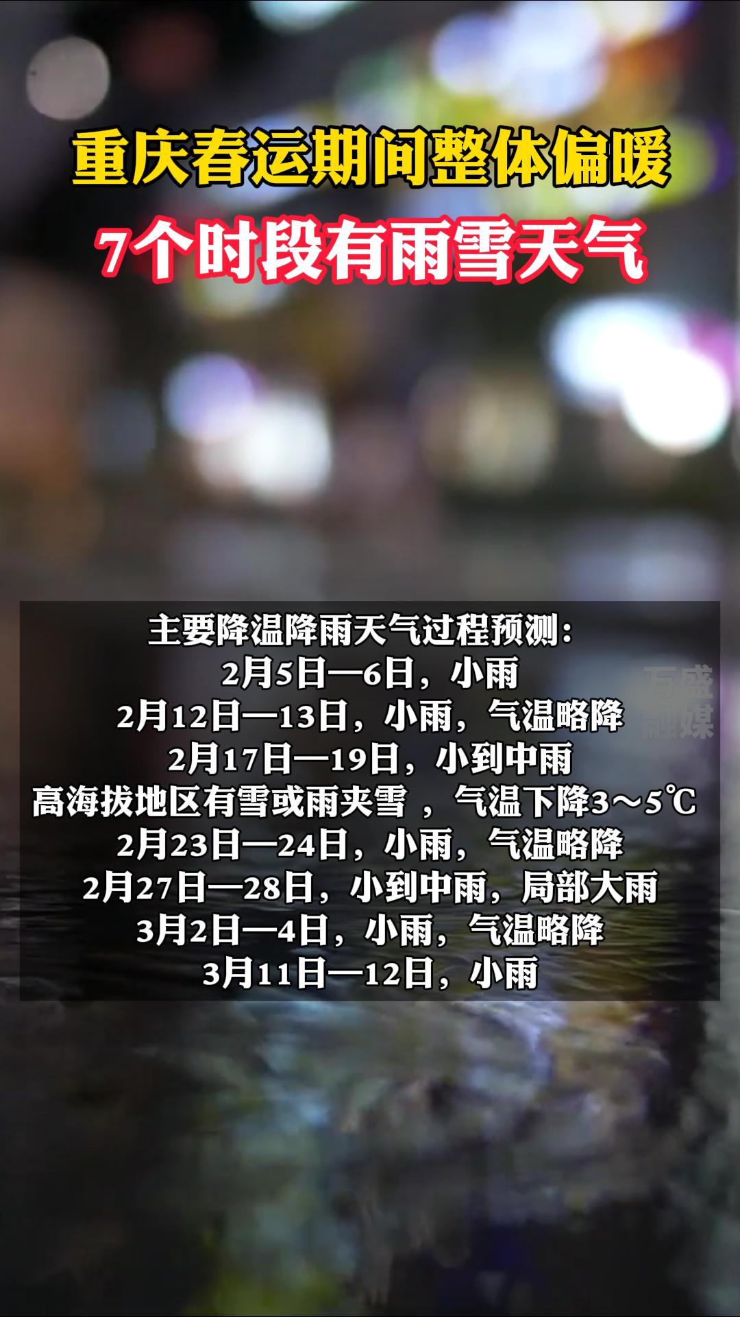 重庆春运期间整体偏暖