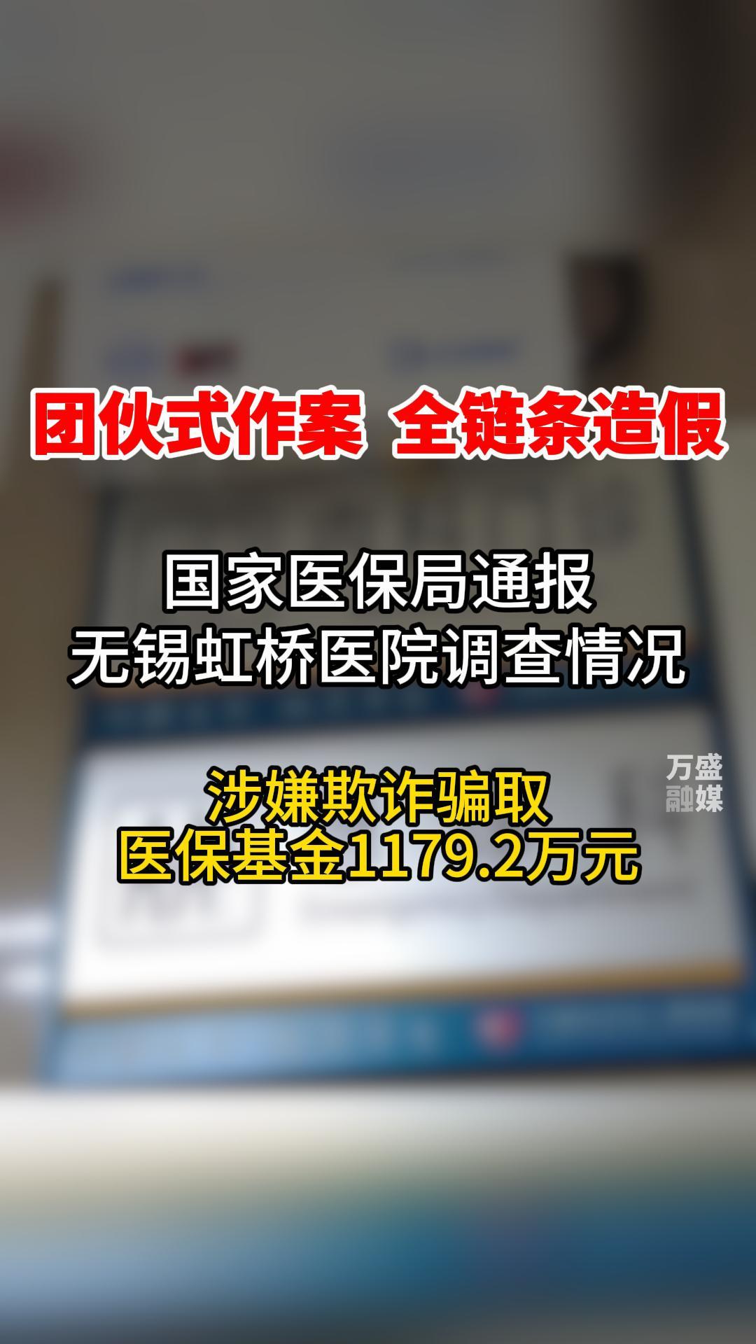 国家医保局通报无锡虹桥医院涉嫌欺诈骗保情况